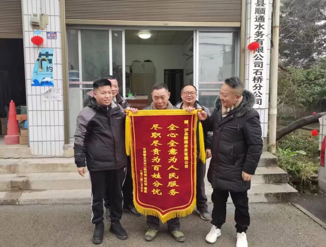 2月7日,石橋鎮(zhèn)永定村送來錦旗,感謝順通水務(wù)公司解決用水問題,為民辦實(shí)事。