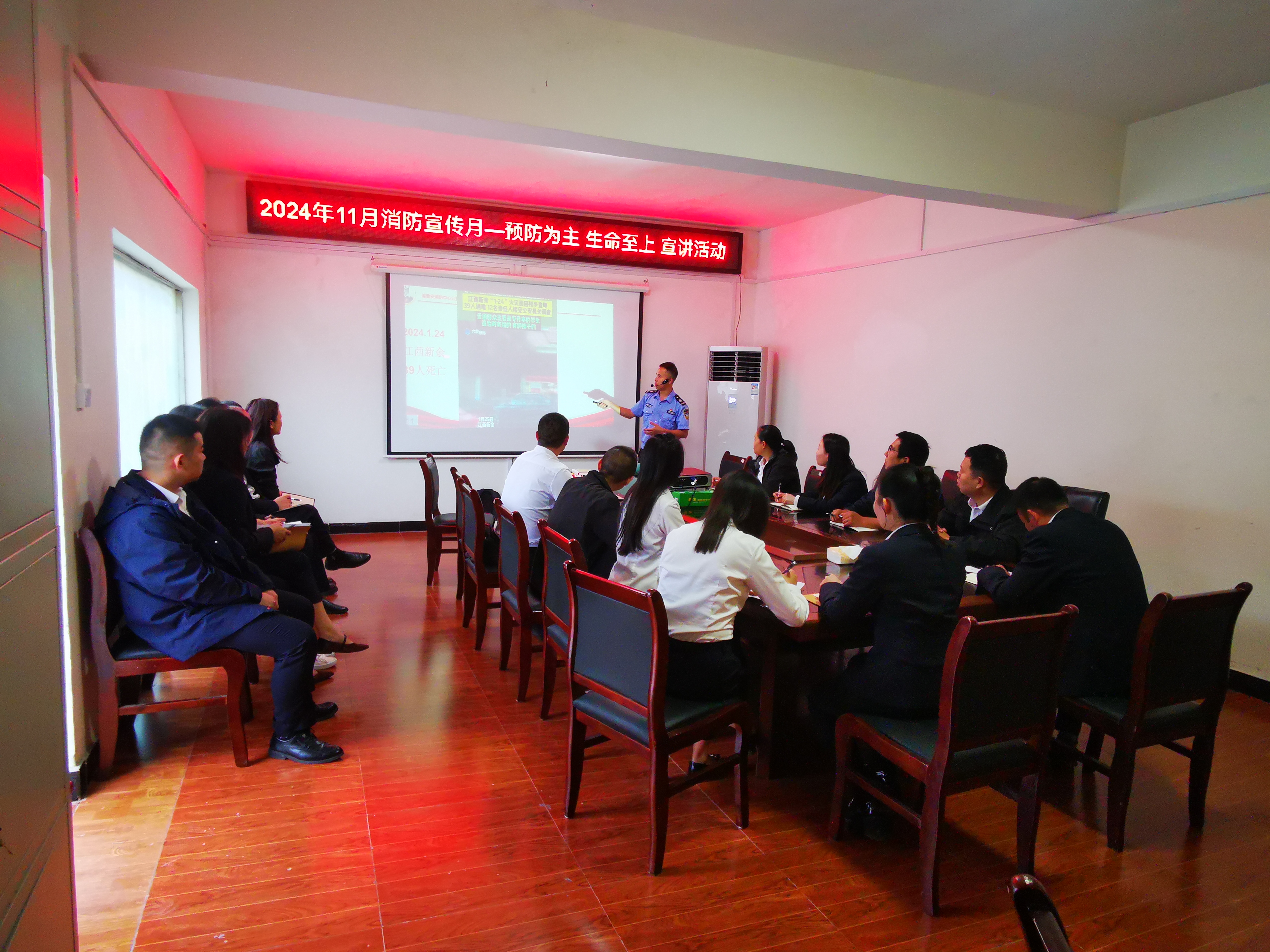 為全面貫徹落實(shí)消防安全主體責(zé)任,進(jìn)一步提升企業(yè)員工的消防安全意識(shí)和自防自救能力,近日,保安公司、人力資源公司邀請(qǐng)市政宣消防的專(zhuān)家開(kāi)展消防安全月專(zhuān)題講座。